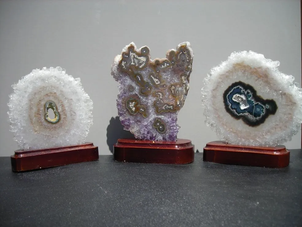We are wholesalers of jewelry, baskets, Brazilian amethyst, bookends, agate slices and minerals.
