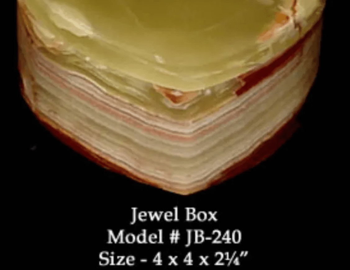 Arlette Overseas, Inc. for onyx flower vases, chess sets, jewelry boxes, and salt lamps.